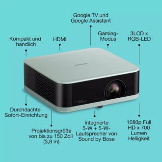Ursprünglicher Preis war: 770,00 €577,50 €Aktueller Preis ist: 577,50 €.Sparen Sie 192,50 €Epson EF-61G Lifestudio Pop Mini-Laserprojektor 700 Lumen FHD HDMI Grün
