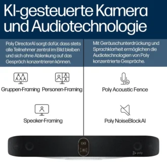 Ursprünglicher Preis war: 2787,32 €2090,49 €Aktueller Preis ist: 2090,49 €.Sparen Sie 696,83 €Poly Studio V52 USB-Videobar (WiFi/BT 5.0) Kleine bis Mittelgroße Meetingräume