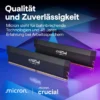 Crucial® DDR5 Pro Speicher verfügt über eine beeindruckende Geschwindigkeit und enorme Bandbreite, wie sie zur Unterstützung von Next-Gen Multi-Core-CPUs erforderlich sind.1 Darüber hinaus entfällt der Zwang, sich mit Übertakten, Latenzoptimierung, der Jagd nach Dies und LEDs auseinandersetzen zu müssen. Diese innovative Technologie ermöglicht ein besseres Multitasking, schnelleres Laden, Analysieren, Bearbeiten und Rendern. Spielen Sie mit höheren Bildwiederholraten, greifen Sie Daten schneller auf Daten zu, steigern Sie die Produktivität, um Zeit und Geld zu sparen, reduzieren Sie die Verzögerung bei hohen Workloads erheblich, und optimieren Sie die Energieeffizienz gegenüber der vorherigen Generation mit Intel® XMP 3.0 und AMD EXPO™2-Unterstützung auf allen Modulen.. Mit 6000 MT/s und 16 GB Dichten und einem trendigen Hitzeverteiler kann Crucial DDR5 Pro Speicher für Ihren Computer1 ein unglaubliches Tempo erreichen, wie es früher nur mit extrem leistungsstarkem Speicher möglich war.