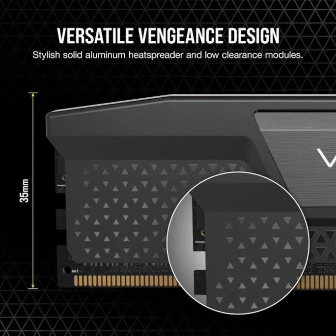 Heatspreader aus massivem Aluminium: Der Heatspreader im eleganten VENGEANCE-Look harmoniert mit dem Design moderner Systeme und leitet effektiv Abwärme von Ihrem Arbeitsspeicher ab.