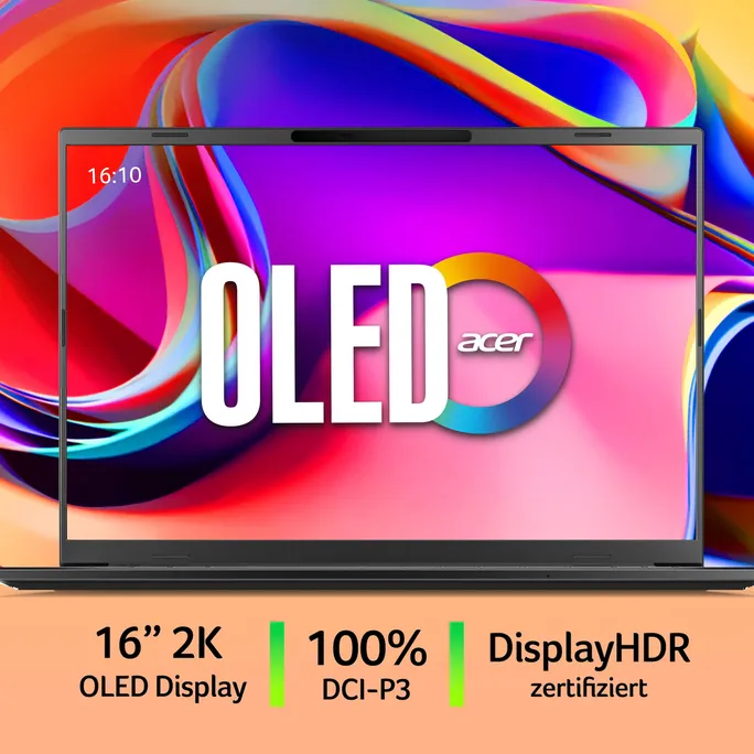 Der 16-Zoll große OLED-Bildschirm in WUXGA+ Auflösung offenbart gestochen scharfe und lebendige Bilder. Mit einem 16:10 Bildformat und einer Bildwiederholrate von 120 Hz genießen Sie flüssige Übergänge und satte Farben, perfekt für Filmliebhaber und kreative Köpfe, die beim Design keine Kompromisse eingehen wollen.