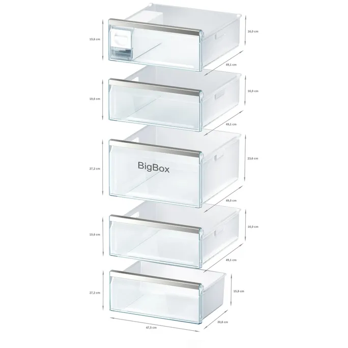 Eine extratiefe Gefriergutschublade zum praktischen Stapeln von Gefrierbehältern oder großen Tiefkühlpackungen, wie Torten oder Pizzen. Ganz egal, ob du einen Kindergeburtstag vorbereitest oder eine Hochzeitstorte lagern möchtest – in der Big Box ist selbst für große Tiefkühlware genügend Platz.
