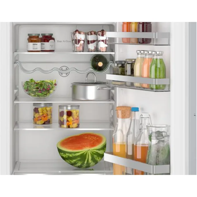 Unterschiedliche Temperaturen im Kühlschrank beeinflussen die Aroma und Haltbarkeit deiner Lebensmittel. Eco Airflow verteilt die Temperatur und Feuchtigkeit gleichmäßig, sodass deine Lebensmittel länger frisch bleiben.