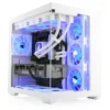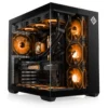 Der Midi-Tower in elegantem Schwarz ist mit RGB-Beleuchtung und Tempered Glass ausgestattet, was nicht nur die Ästhetik verbessert, sondern auch eine einfache Überwachung der internen Komponenten ermöglicht. Das durchdachte Design macht den PC zu einem Blickfang in jedem Raum.