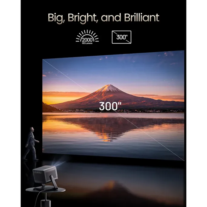 2000 ISO Lumen 4K Beamer mit HDR10+: Erleben Sie atemberaubende 4K Klarheit (3840 x 2160) von Dangbei. 2000 ISO Lumen sorgen für lebendiges Fernsehen bei Tageslicht. Genießen Sie HDR10+/HLG für tiefere Schwarztöne und sattere Farben sowie einen 108% REC-709 Farbraum für Präzision in Kinoqualität. Perfekt für Filme, Sport und Gaming mit außergewöhnlicher Detailtreue und Farbtreue bei allen Lichtverhältnissen.Google TV und lizenzierter Netflix: Integriertes Google TV mit Netflix-Zertifizierung bietet über 700.000 Filme/Serien von Netflix, Prime Video und über 10.000 Apps. Die Sprachsteuerung „Hey Google“ ermöglicht die freihändige Bedienung, während WiFi 6 für flüssiges 4K-Streaming sorgt. Bluetooth 5.2 ermöglicht kabelloses Audio, und die benutzerdefinierte Fernbedienung bietet App-Verknüpfungen mit nur einem Tastendruck.InstanPro KI-gesteuerte Einstellungen: Dangbeis InstanPro KI sorgt für sofortige Perfektion: Autofokus sorgt für gestochen scharfe Bilder, während die Echtzeit-Trapezkorrektur die Ausrichtung beibehält. Bildschirmangepasst passt sich jeder Oberfläche an, und die Hindernisvermeidung navigiert um Objekte herum. KI-Helligkeitsanpassung für jedes Licht. Genießen Sie professionelle Einrichtungsqualität ohne großen Aufwand.Dolby Audio & Dual 12W Kinosound: Erleben Sie immersiven Klang mit zwei 12W-Lautsprechern und einer 600-cm³-Akustikkammer mit Dolby Audio/DTS Virtual:X für Klang in Kinoqualität. Genießen Sie 2,5-mal sattere Bässe als bei Standardprojektoren, klare Dialoge und räumliche Effekte. Präzisen Mitten und satten, tiefen Bässen – genau wie im Kino. Bluetooth 5.2 verbindet kabellose Kopfhörer, während HDMI eARC High-End-Soundsysteme unterstützt.300“ Bildschirm & Eingebauter Ständer: Der integrierte Gimbal-Ständer bietet 360°-Drehung und 120°-Neigung für eine perfekte Positionierung. Projizieren Sie 40-300-Zoll-Bilder in konstanter 4K-Klarheit. Zwei HDMI-2.1-Anschlüsse unterstützen 4K-Gaming mit 120 Hz und verfügen über USB 2.0, LAN und optische Audioanschlüsse. Das robuste, minimalistische Design passt perfekt in jeden Raum – für Filme, Sport oder Outdoor-Unterhaltung.