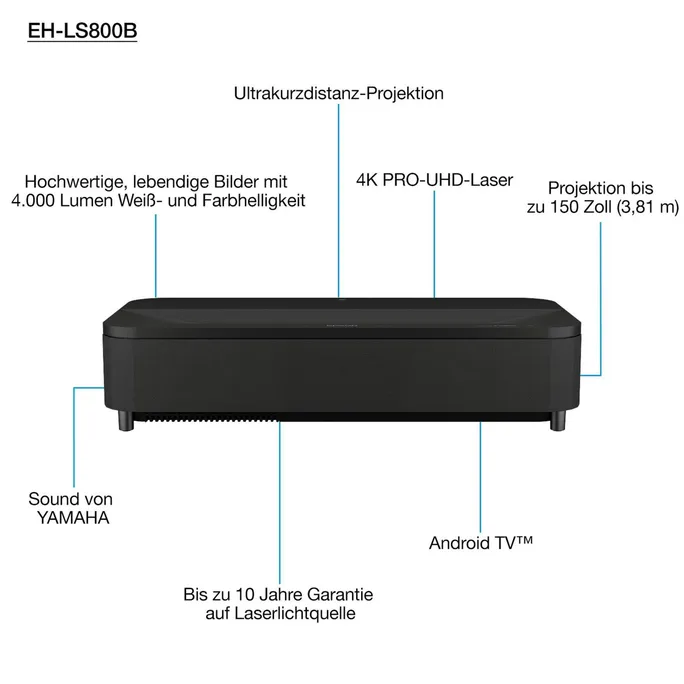 Epson EH-LS800B 3LCD Ultrakurzdist. Pojektor 4000 Lumen 4K PRO-UHD HDMI Schwarz