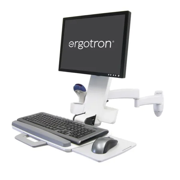 Der 200-Combo verfügt über einen Monitor, Barcode-Scanner, Tastatur, Handballenauflage und Maus auf demselben Arm. Arm kann ausgefahren und zurückgezogen werden; falten Sie ihn zusammen, wenn er nicht benötigt wird. Ein einzigartiges Kabelführungssystem verdeckt und ordnet die Kabel und erleichtert die Reinigung!