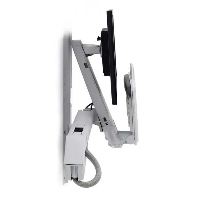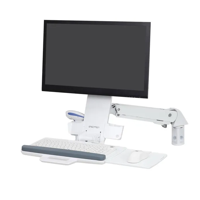 Lassen Sie die Betreuer in Ihrer medizinischen Einrichtung sitzend und stehend arbeiten, mit allem zur Hand, was sie brauchen. Dieser Sitz-Steh-Kombiarm hält Monitor, Barcodescanner, Tastatur, Handballenauflage und Maus auf demselben höhenverstellbaren Arm für eine ergonomische Passform, die die besten Arbeitsabläufe (und den besten Komfort) unterstützt.