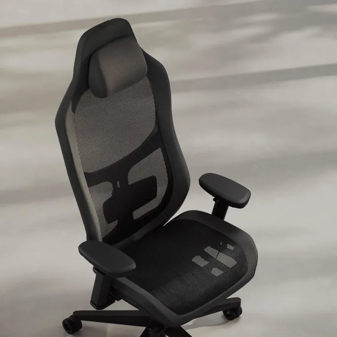 • Verleihe deiner Gaming-Station durch das cleane, aber dynamische Design mit Stoff-, Mesh- oder Alcantara-Bezug mehr Eleganz