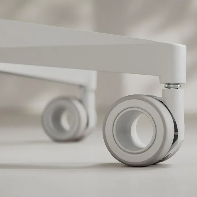 • Leichtgängige, nabenlose Rollen aus speziellem Material, das Stöße absorbiert, die Lautstärke reduziert und die Oberfläche des Bodens schont