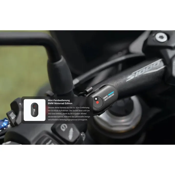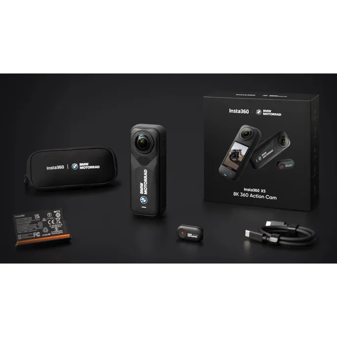 Das BMW Motorrad Edition enthält 1x Insta360 X5 BMW Motorrad Edition, 1x Mini-Fernbedienung BMW Motorrad Edition und 1x Ultra-Akku (vorinstalliert).