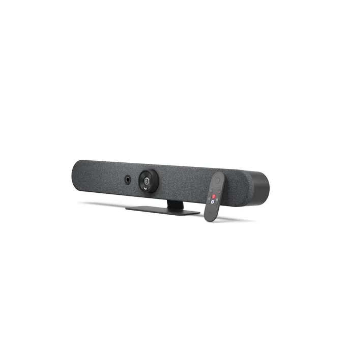 - Integrierte Komponenten: 6 Beamforming-Mikrofone, PTZ-Kamera, 3 Lautsprecher, KI-Sucher, Kabelführungs- und -aufbewahrungssystem, Tischstativ, Logitech CollabOS-Plattform