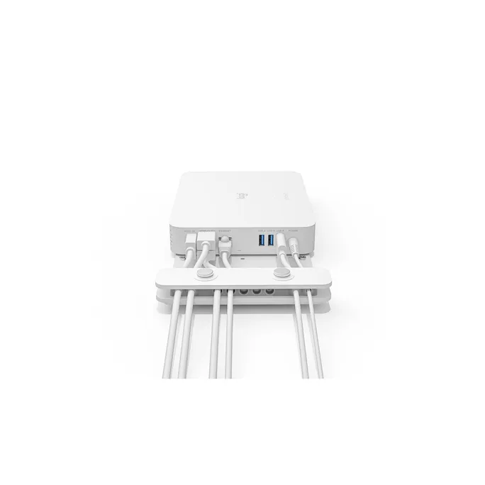 RoomMate lässt sich sicher und unauffällig montieren. Die optionale Gerätehalterung ermöglicht eine unauffällige Montage und Kabelführung hinter einem Bildschirm, in einem Schrank oder auf einem Technikwagen.