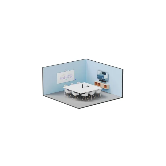 - Integrierte Komponenten: 7 Beamforming-Mikrofone, Kamera mit zwei Objektiven, Logitech CollabOS Plattform
