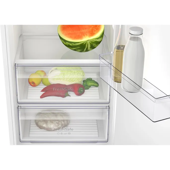 Begrenzter Platz in Ihrer Küche muss Ihre großen Kochpläne nicht einschränken. Im Gefrierfach **** werden Ihre Lebensmittel eisgekühlt und sind trotzdem griffbereit. Die Aufteilung und das Design des Kühlschrank sind so clever, dass er immer die richtige Temperatur hat, während das integrierte Gefrierfach unter -18 °C bleibt und Ihre Lebensmittel unter idealen Bedingungen aufbewahrt werden können.