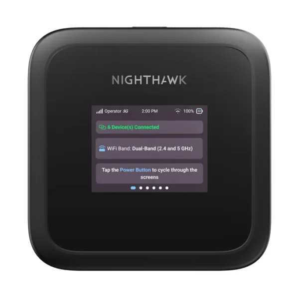 2,4-Zoll-BildschirmEinfaches Überwachen und Verwalten von WLAN mit der Tastennavigation auf einem intuitiven 2,4-Zoll-LCD-Bildschirm.Ultraschnelle KabelgeschwindigkeitenNutzen Sie den USB-C-Anschluss als ultraschnelle Kabelverbindung mit Geschwindigkeiten von bis zu 5 Gbit/s.Langlebiger AkkuMit 13 Stunden Akkulaufzeit erhalten Sie Leistung für den ganzen Tag*.Verbesserter EmpfangVerbessern Sie Ihren 5G-Mobilfunkempfang, indem Sie externe 5G-Antennen (separat erhältlich) an verfügbare Antennenanschlüsse anschließen.Hohe LeistungAngetrieben durch das Qualcomm® Snapdragon™ SDX62 5G Modem-RF-System für hohe Leistung und Geschwindigkeiten.*Die tatsächliche Akkulaufzeit variiert je nach Netzwerk- und Umgebungsbedingungen, verbundenen Geräten, gestreamten Inhalten, Geräteeinstellungen und Alterung des Akkus.‡Dieser mobile Hotspot hat eine maximale 5G-Geschwindigkeit von bis zu 2,5 Gbit/s. Ihre tatsächliche Geschwindigkeit hängt von mehreren Faktoren ab, einschließlich (aber nicht beschränkt auf) die Tatsache, dass Ihr ISP mindestens 120 MHz 5G Sub-6 unterstützt, die Entfernung zum 5G-Turm Ihres ISPs, Netzwerküberlastung, den Standort des mobilen Hotspots auf Ihrem Gelände und jegliche Hindernisse zwischen dem mobilen Hotspot und dem 5G-Turm Ihres ISPs.∞Maximale Wireless-Signalrate abgeleitet aus den IEEE 802.11-Spezifikationen. Der tatsächliche Datendurchsatz und die Wireless-Abdeckung variieren und werden durch Netzwerk- und Umgebungsbedingungen, einschließlich Netzwerkverkehrsvolumen, Gerätebeschränkungen und Gebäudebau, verringert. NETGEAR gibt keine Zusicherungen oder Garantien hinsichtlich der Kompatibilität dieses Produkts mit zukünftigen Standards.Qualcomm Snapdragon ist ein Produkt von Qualcomm Technologies, Inc. und/oder seinen Tochtergesellschaften. Qualcomm und Snapdragon sind Marken von Qualcomm Incorporated, eingetragen in den Vereinigten Staaten und anderen Ländern.NETGEAR, das NETGEAR-Logo und Nighthawk sind Marken von NETGEAR, Inc. Andere hier erwähnte Markennamen dienen nur zu Identifikationszwecken und können Marken ihrer jeweiligen Inhaber sein. Informationen können ohne Vorankündigung geändert werden. ©2024 NETGEAR, Inc