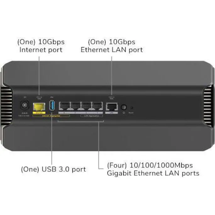 Schließen Sie kabelgebundene Geräte an, um die Leistung über einen 10-Gbit/s-Ethernet-LAN-Anschluss und vier 1-Gbit/s-Ethernet-LAN-Anschlüsse zu verbessern.