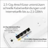 2,5 Gbit/s Ethernet-Ports bieten unschlagbare Geschwindigkeit und Zuverlässigkeit für kabelgebundene Verbindungen und 2,5 Gbit/s kabelgebundene Backhaul option​