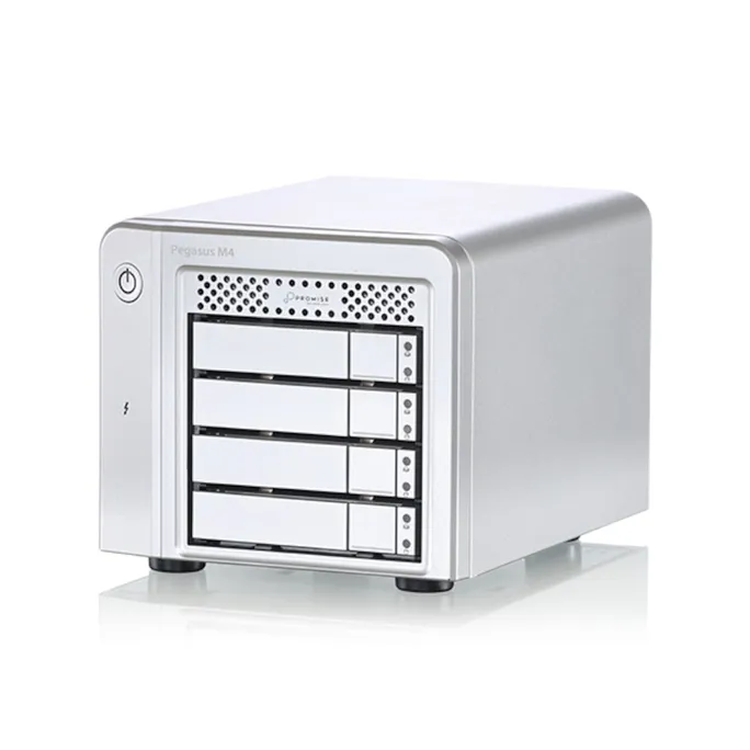 Der Pegasus M4 kombiniert die robuste PromiseRAID-Engine – bekanntfür Stabilität und hohe Leistung – mit dem hohen Thunderbolt™-Durchsatz in einem kompakten SSD-Gehäuse mit vier Einbauschächten. Der M4 eignet sich perfekt für kreative Medienprofis unterwegs.