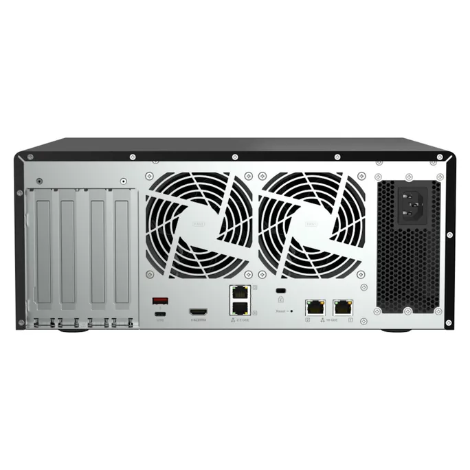 Mit 2 x 10GbE und 2 x 2,5GbE Ports sowie PCIe-Steckplätzen zur Erweiterung unterstützt das TS-h1277AFX den direkten Anschluss von bis zu 10 PCs/Workstations ohne Switch.