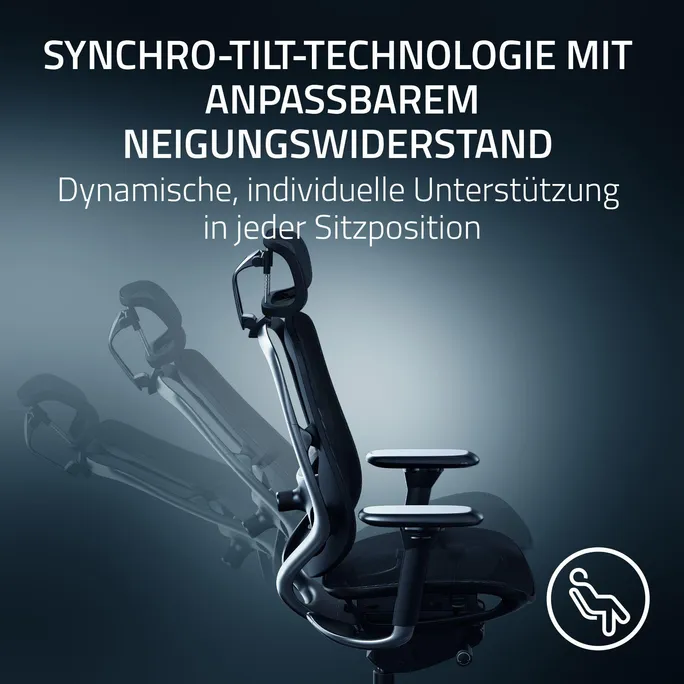 - Synchro-Tilt-Technologie mit anpassbaren Neigungswiderstand: Dynamische, individuelle Unterstützung in jeder Sitzposition. Einfach zurücklehnen, und sowohl die Rückenlehne als auch die Sitzfläche ändern ihre Position, um dir optimalen Halt zu geben. Du kannst den Widerstand anpassen, um beim Zurücklehnen ein strafferes oder entspannteres Feeling zu haben.