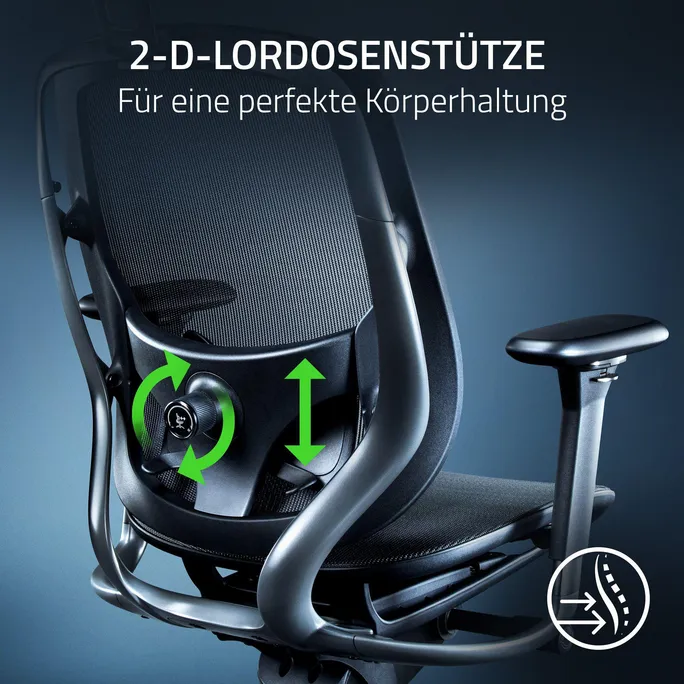 - 2-D-Lordosenstütze: Für eine perfekte Körperhaltung – Die Lordosenstütze ist so geformt, dass sie perfekt zur Krümmung deiner Wirbelsäule passt. Du kannst sie in Höhe und Tiefe anpassen. Das sorgt für eine optimale Sitzhaltung beim Gaming.