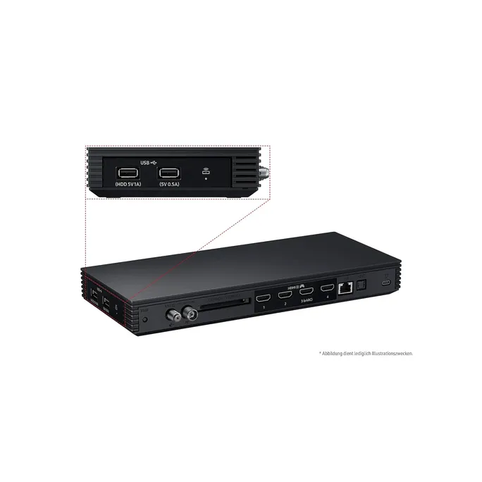 Schließe deine externen Quellen bequem an die Wireless One Connect Box an, die mit ihrem schlanken, kabellosen Design dein Wohnambiente aufwertet.2