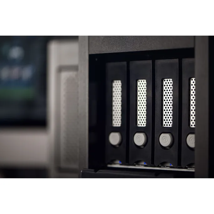 Das G-RAID Shuttle 4 wurde für Produktionsabläufe mit mehreren Streams in 4K und 8K entworfen und bringt die nötige Bandbreite mit, um über einen effizienten Workflow Aufnahmen aus mehreren Kameras in Echtzeit bearbeiten, Aufnahmen mit Multi-Layer-Effekten rendern und in schnellem Tempo exportieren zu können.