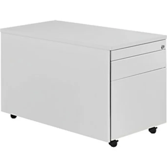 Schubladencontainer mit Rollen, HxT 529 x 800 mm, 1 Materialschub, 1 Hängeregistratur, lichtgrau / lichtgrau / lichtgrau. Anlieferung = montiert. Höhe = 529 mm. Breite = 417 mm. Tiefe = 800 mm. Utensilienschub = ja. Anzahl Hängeregistraturschübe = 1 Stück. Auszug Hängeregistratur = Vollauszug. Innenmaße Hängeregistratur HxBxT = 280x330x685 mm. Anzahl Materialschübe = 1 Stück. Auszug Materialschub = 75%. Innenmaße Materialschub HxBxT = 80x330x685 mm. Produkttyp = Rollcontainer. Material = Stahl, pulverbeschichtet. Korpusfarbe = lichtgrau RAL 7035. Korpusstärke = 0.75 mm. Schubladenmaterial = Stahlblech. Schubladenfarbe = lichtgrau RAL 7035. Schubladentraglast = 18 kg. Schubladen-Anzahl/Größe = 1 Stk HxBxT 80x330x685 mm, 1 Stk HxBxT 280x330x685 mm. Schubladenführung = mit kugelgelagerten Teleskopauszügen. Eigenschaft = verschließbar, Auszugsperre. Radausstattung = 4 Rollen, davon 2 feststellbar. Raddurchmesser = 35 mm. Plattenstärke = 19 mm. Hochwertige Schubladenführung mit Selbsteinzug und Dämpfung. Alle Ausführungen mit Utensilienschub. Materialschübe 75%, Hängeregistraturen 100% ausziehbar. Schubladen mit Griffrinnen auf beiden Seiten und geschlossenem Boden. Hochwertige Führungen mit Selbsteinzug und Dämpfung. Auszugssperre und Drehzylinderschloss, verschiedenschließend. Stabiler, verschweißter Stahlblechkorpus mit hochwertiger Einbrennlackierung. Abdeckplatte melaminharzbeschichtet 19 mm mit ABS-Umleimer. 1 Materialschub, 1 Hängeregistratur, kleine Schublade mit Teilauszug, große Schublade mit Vollauszug. Montierte Anlieferung.