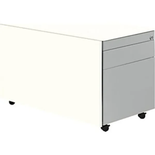 Schubladencontainer mit Rollen, HxT 520 x 800 mm, 1 Materialschub, 1 Hängeregistratur, reinweiß / weißaluminium / reinweiß. Anlieferung = montiert. Höhe = 520 mm. Breite = 417 mm. Tiefe = 800 mm. Utensilienschub = ja. Anzahl Hängeregistraturschübe = 1 Stück. Auszug Hängeregistratur = Vollauszug. Innenmaße Hängeregistratur HxBxT = 280x330x685 mm. Anzahl Materialschübe = 1 Stück. Auszug Materialschub = 75%. Innenmaße Materialschub HxBxT = 80x330x685 mm. Produkttyp = Rollcontainer. Material = Stahl, pulverbeschichtet. Korpusfarbe = reinweiß RAL 9010. Korpusstärke = 0.75 mm. Schubladenmaterial = Stahlblech. Schubladenfarbe = weißaluminium RAL 9006. Schubladentraglast = 18 kg. Schubladen-Anzahl/Größe = 1 Stk HxBxT 80x330x685 mm, 1 Stk HxBxT 280x330x685 mm. Schubladenführung = mit kugelgelagerten Teleskopauszügen. Eigenschaft = verschließbar, Auszugsperre. Radausstattung = 4 Rollen, davon 2 feststellbar. Raddurchmesser = 35 mm. Plattenstärke = 10 mm. Hochwertige Schubladenführung mit Selbsteinzug und Dämpfung. Alle Ausführungen mit Utensilienschub. Materialschübe 75%, Hängeregistraturen 100% ausziehbar. Schubladen mit Griffrinnen auf beiden Seiten und geschlossenem Boden. Hochwertige Führungen mit Selbsteinzug und Dämpfung. Auszugssperre und Drehzylinderschloss, verschiedenschließend. Stabiler, verschweißter Stahlblechkorpus mit hochwertiger Einbrennlackierung. Stahlabdeckplatte 10 mm. 1 Materialschub, 1 Hängeregistratur, kleine Schublade mit Teilauszug, große Schublade mit Vollauszug. Montierte Anlieferung.