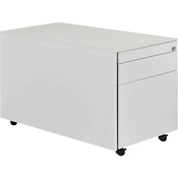 Schubladencontainer mit Rollen, HxT 520 x 800 mm, 1 Materialschub, 1 Hängeregistratur, lichtgrau / lichtgrau / lichtgrau. Anlieferung = montiert. Höhe = 520 mm. Breite = 417 mm. Tiefe = 800 mm. Utensilienschub = ja. Anzahl Hängeregistraturschübe = 1 Stück. Auszug Hängeregistratur = Vollauszug. Innenmaße Hängeregistratur HxBxT = 280x330x685 mm. Anzahl Materialschübe = 1 Stück. Auszug Materialschub = 75%. Innenmaße Materialschub HxBxT = 80x330x685 mm. Produkttyp = Rollcontainer. Material = Stahl, pulverbeschichtet. Korpusfarbe = lichtgrau RAL 7035. Korpusstärke = 0.75 mm. Schubladenmaterial = Stahlblech. Schubladenfarbe = lichtgrau RAL 7035. Schubladentraglast = 18 kg. Schubladen-Anzahl/Größe = 1 Stk HxBxT 80x330x685 mm, 1 Stk HxBxT 280x330x685 mm. Schubladenführung = mit kugelgelagerten Teleskopauszügen. Eigenschaft = verschließbar, Auszugsperre. Radausstattung = 4 Rollen, davon 2 feststellbar. Raddurchmesser = 35 mm. Plattenstärke = 10 mm. Hochwertige Schubladenführung mit Selbsteinzug und Dämpfung. Alle Ausführungen mit Utensilienschub. Materialschübe 75%, Hängeregistraturen 100% ausziehbar. Schubladen mit Griffrinnen auf beiden Seiten und geschlossenem Boden. Hochwertige Führungen mit Selbsteinzug und Dämpfung. Auszugssperre und Drehzylinderschloss, verschiedenschließend. Stabiler, verschweißter Stahlblechkorpus mit hochwertiger Einbrennlackierung. Stahlabdeckplatte 10 mm. 1 Materialschub, 1 Hängeregistratur, kleine Schublade mit Teilauszug, große Schublade mit Vollauszug. Montierte Anlieferung.