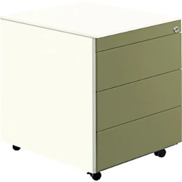 Schubladencontainer, Rollen, 570x600mm, Stahlplatte, 3xSchublade, weiß/grün/weiß