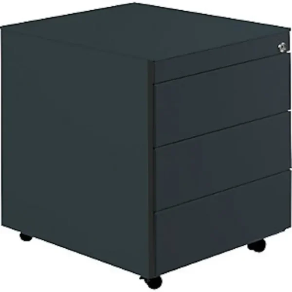 Schubladenrollcontainer, HxT 570×600 mm, Stahlplatte, 3 Schubl., anthrazitgrau