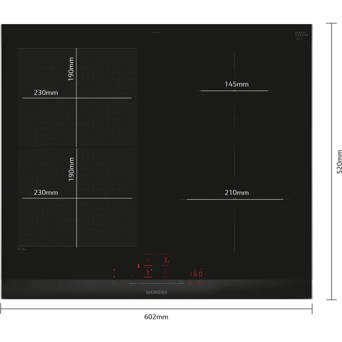Siemens EX675HEC1E iQ700 Induktionskochfeld 60 cm Schwarz, Mit Rahmen aufliegend