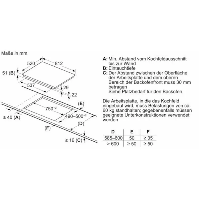 - Nischen-Breite: 750 mm