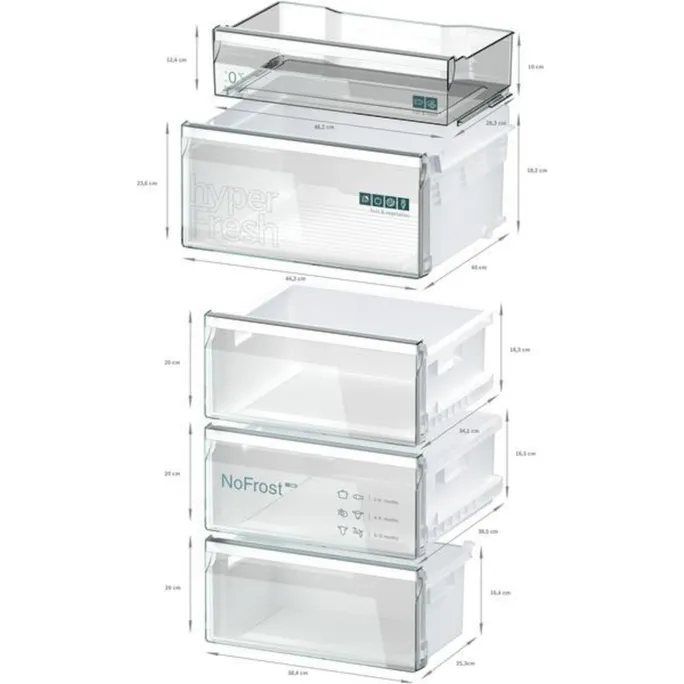 - hyperFresh 0°C: mehr Platz für Obst und Gemüse. Und eine besonders kalte Umgebung für Fisch und Fleisch.