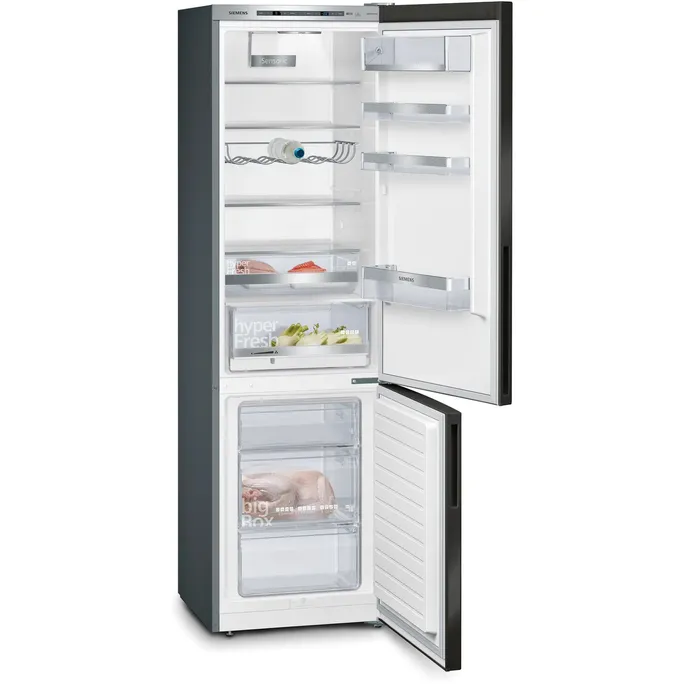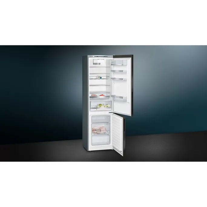 Siemens KG39E8XBA iQ500 Freistehende Kühl-Gefrier-KombinationSpare Energie und Aufwand beim Abtauen.Die lowFrost-Technologie mit ihrem speziellen Verdampfer reduziert die Eisbildung auf ein Minimum. Das wenige Eis, das sich bildet, wird gleichmäßig verteilt, was das Abtauen schnell und einfach macht und den Energieverbrauch deines Kühlschranks niedrig hält. Minimiere den Aufwand beim Abtauens mit lowFrost.Auf einen Blick sehen, was im Kühlschrank ist.Das eingebaute LED-Licht sorgt für eine gleichmäßige Ausleuchtung, sodass du direkt siehst, was du Gutes im Kühlschrank hast. Die Positionierung der LEDs im vorderen Bereich des Kühlschranks sorgt dafür, dass Lebensmittel nichts verdunkeln. Noch besser: Die LEDs sind langlebig und energieeffizient.