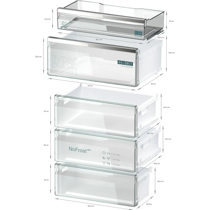 • hyperFresh 0°C: mehr Platz für Obst und Gemüse. Und eine besonders kalte Umgebung für Fisch und Fleisch.