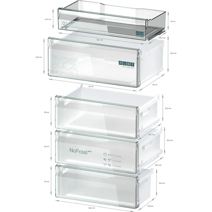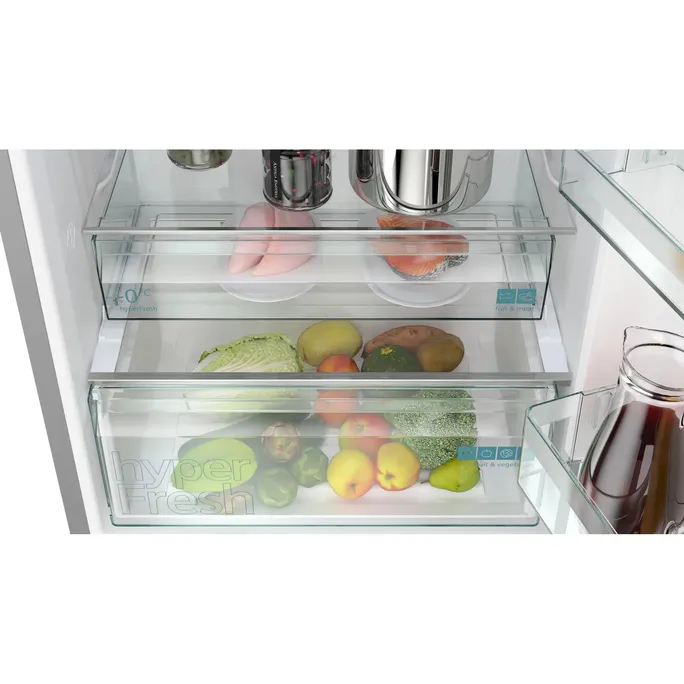 Du musst du dein Gefrierfach nie wieder abtauen, damit dein Gefriergut einwandfrei bleibt und dein Gerät energieeffizient läuft. Das noFrost-System hält die Luft trocken, indem es ihr Feuchtigkeit entzieht. Das verhindert die Bildung von Eis an den Innenwänden des Geräts oder von Reif auf den Lebensmitteln – und Abtauen wird überflüssig. Dadurch sparst du nicht nur Aufwand, sondern auch Energie, denn ein frostfreies Gefrierfach arbeitet effizienter.