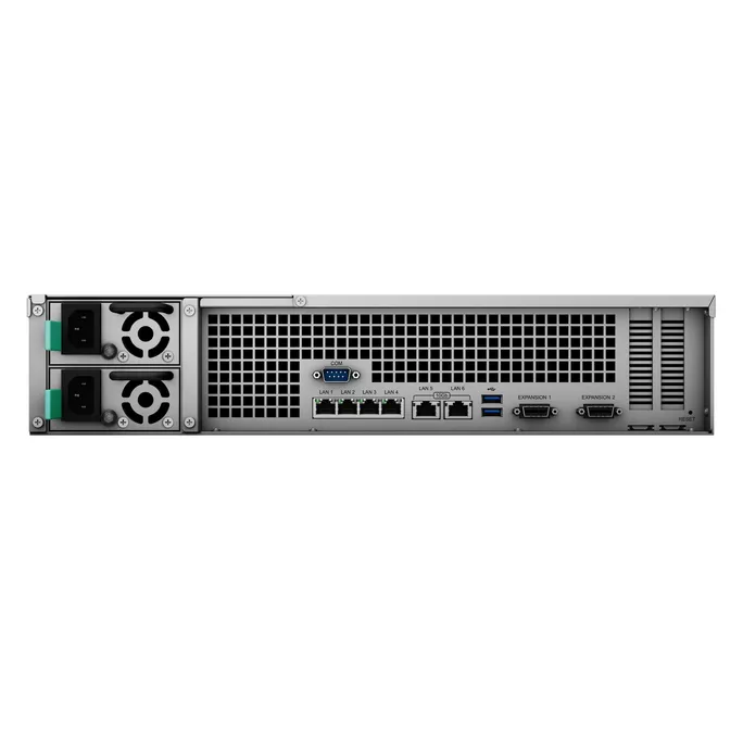 • Bietet 12 Einschübe für SATA HDD/SSD-Laufwerke mit 2,5/3,5″5, mit zwei Synology-Expansionseinheiten RX1217(RP) auf bis zu 36 Einschübe erweiterbar