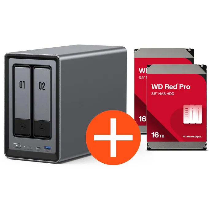 UGREEN NASync DXP2800 NAS System 2-Bay 32TB inkl. 2x WD WD161KFGX NAS HDD - 16 TB